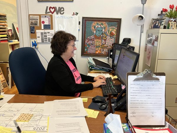 This school year has brought various changes to our school community. One of the major changes includes a new addition to the Campus Ministry Team: Mrs. Cathy Abrahamian. She has previously worked as an Administrative Assistant to the President for 25 years, working for six different presidents. Currently, she serves as the Student Ministry Director and helps with the three parts of Campus Ministry: liturgy, service, and growing faith. Her role includes focusing on improving the service aspect of our community, checking up on student’s service hours, and providing more opportunities for service. When asked for her opinion of her new role, Mrs. Abrahamian said, “Campus Ministry has always been my dream job, so I really feel like God led me here and I hope to do a good job.” She is grateful that she is able to interact with the students everyday while also deepening her own faith.